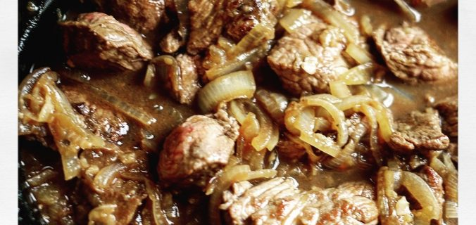 Bak in dezelfde koekenpan de uien in de boter tot de uien bruin zien. Breng op smaak met zout en peper. Bestrooi met de bloem en meng goed door elkaar.