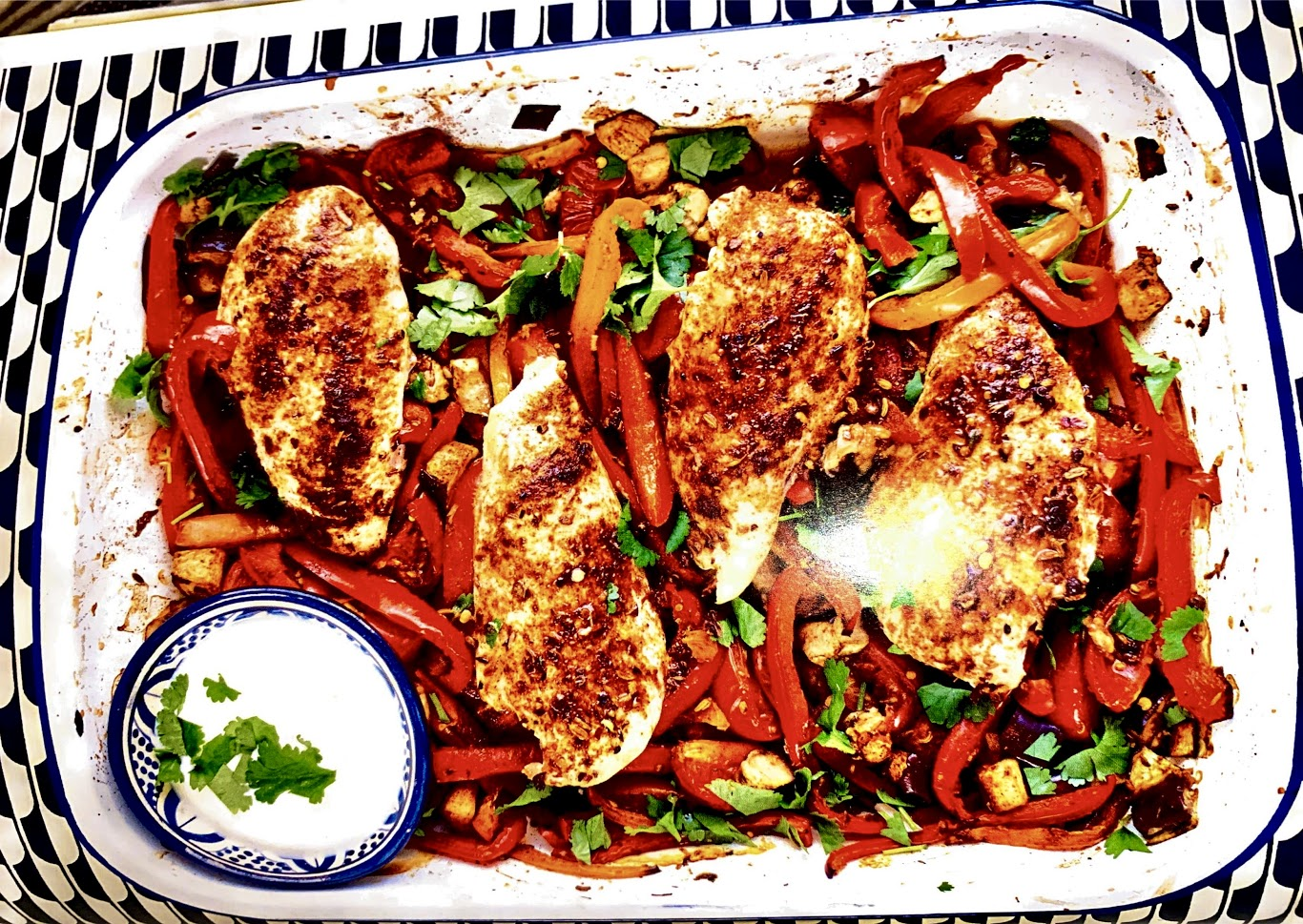 Spiced Roast Chicken with Peppers, Aubergine & Onion