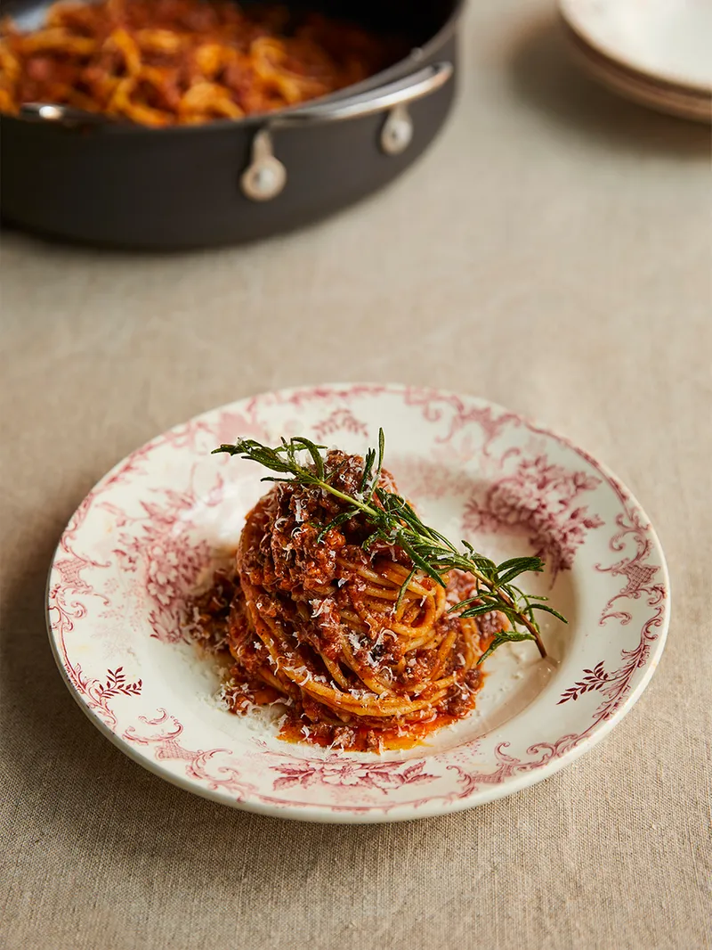Divide the spaghetti between plates or bowls, add a good spoonful of Bolognese to each, then serve with a fine grating of Parmesan.