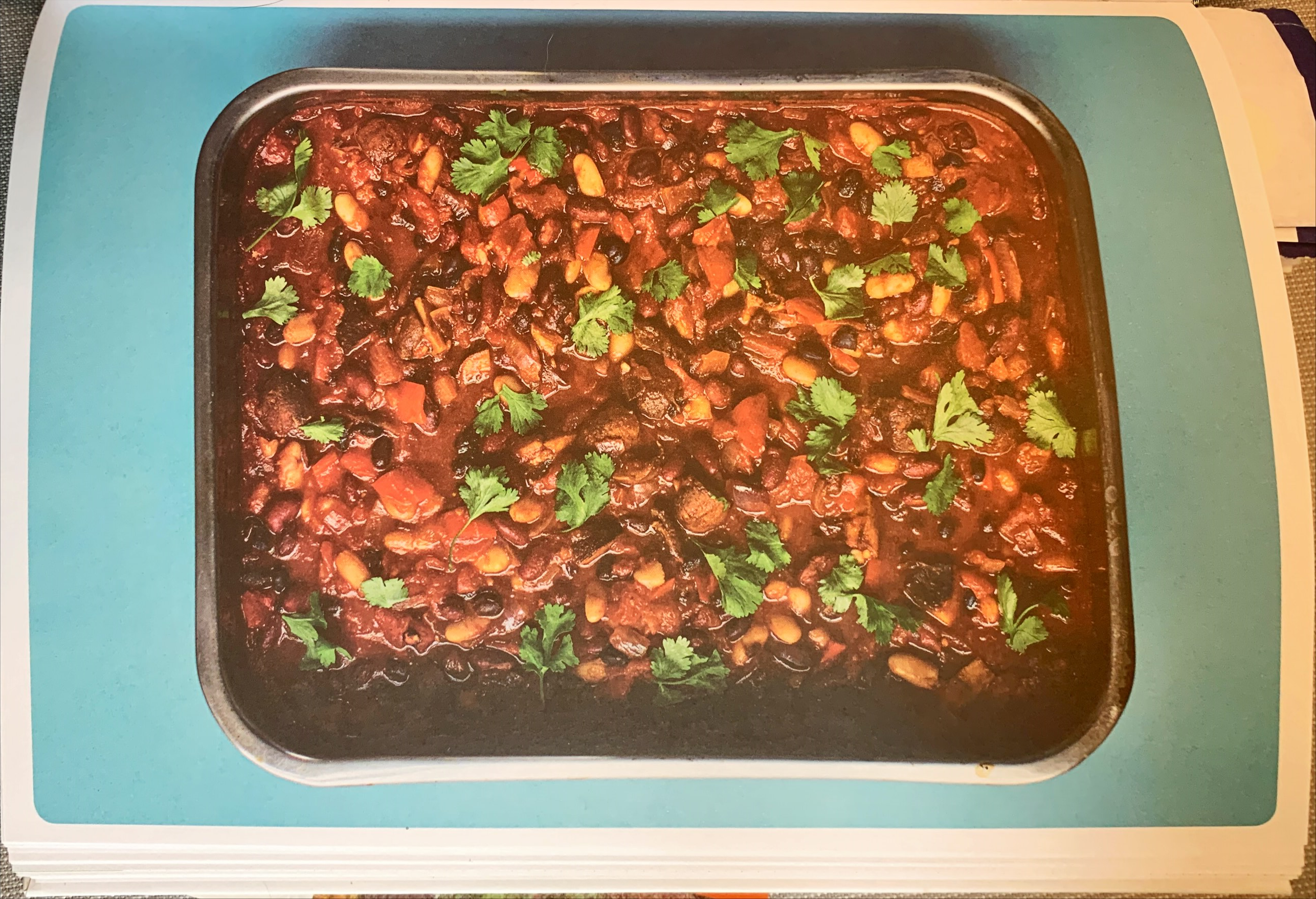 - 10 minutes before the chilli is done, combine all the salsa ingredients in a small bowl, mashing the avocado very lightly with the back of a fork. It should remain fairly chunky.